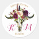 Sticker Rond Boho Longhorn Crâne Floral Mariage moderne Étiquet