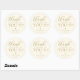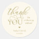 Cadeaux de Merci minimaliste Mariage moderne Sticker classique en écriture romantique, petit coeur mignon, avec signature mariée et mariée et date mariage, thème doré jaune.