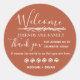 Les autocollants de mariage en terre cuite Boho couleur rouille sont un excellent moyen d'accueillir vos invités et de les remercier d'être venus à votre fête mariage. Ils lisent : Bienvenue amis et famille. Merci de nous rejoindre pour célébrer aujourd'hui. Cela signifie pour nous le monde que vous êtes ici. Customisez avec vos noms.