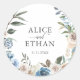 Sticker Rond Boho Rustique Dusty Blue Flowers Mariage