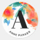 Sticker Rond Boho Stylish Aquarelle Nom Floral Monogramme