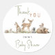 Sticker Rond Bois Animaux Baby shower Merci avec nom
