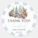 Aquarelle bleu vert vert mignon et élégant Bois de forêt animaux, tels que renard, ours, raton laveur, hibou bébé garçon douche ronde merci autocollants.