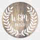 Scellez vos lettres avec une atmosphère de charme campagnard ! Ces lauriers rustiques de ferme blanche sont silhouettés sur un fond de planches de bois de grange légères. Personnalisez le texte des initiales du couple pour une apparence vraiment personnalisée.
