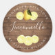 Élégant et rustique autocollant limoncello étiquette avec le texte limoncello, fait maison avec amour et votre nom dans la calligraphie script chic et typographie moderne sur un arrière - plan en bois de grange avec une touche élégante de jolies tranches de citron et citron. Ajoutez simplement votre nom ou votre entreprise. Conçu exclusivement pour vous par Happy Dolphin Studio. Si vous avez besoin d'aide ou de produits correspondants, veuillez nous contacter à happydolphinstudio@outlook.com . Nous sommes heureux de vous aider à faire de votre mariage la plus belle journée!