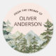 Sticker Rond Boite Rustic Watercolor Forest & Mountain