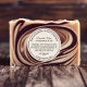 Une étiquette pour les produits de soins de bain et de corps avec un fond de style lin beige et un texte noir.
