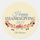 Bon thanksgiving Blue Brown Floral Aquarelle Classic Round Sticker a un modèle pour l'année et pour votre nom de famille