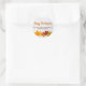 Cet élégant autocollant moderne d'entreprise Thanksgiving présente une belle ligne de feuilles d'automne sur un arrière - plan en bois blanc. Personnalisez avec vos informations d'entreprise sur le devant en orange et brun pour un complément de vacances classe aux cadeaux de vos clients ou des tartes gratuites de votre entreprise.