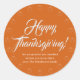 Bon thanksgiving texte de script personnalisé et nom mignon élégant faveurs Stickers Classic Round. Élégante typographie de calligraphie script entourée d'une délicate couronne ronde de citrouilles mignons. Texte blanc entièrement personnalisable sur arrière - plan de couleur épice citrouille. Idéal comme étiquettes cadeaux pour des cadeaux et des faveurs personnalisés.