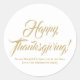 Bon thanksgiving texte de script personnalisé et nom mignon rustique élégante marques de faveur Classic Round Stickers. Élégante typographie de calligraphie de script. Texte en faux or entièrement personnalisable sur arrière - plan blanc. Idéal comme étiquettes cadeaux pour des cadeaux et des faveurs personnalisés. Le design est simple et élégant et peut aussi être utilisé dans un environnement professionnel, d'affaires, de bureau, car il est entièrement personnalisable.