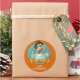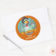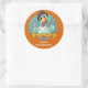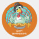 La mignonne Turquie qui mange une tarte et qui souhaite un Bon thanksgiving est drôle. Arrière - plan orange d'automne. Choisissez la forme de l'autocollant dans le menu d'options.
