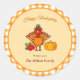 Cet élégant et moderne Thanksgiving party Classic Round Sticker design dispose d'une belle et colorée orange en vichy plaid motif sans couture sur arrière - plan blanc avec Turquie mignonne, citrouille et baies rouges sur beige, typographie "Bon thanksgiving" avec nom de famille. Vous pouvez modifier le texte, les polices et la couleur en cliquant sur les options de personnalisation.