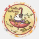 Sticker Rond Bonjour Automne, Chat mignon assis dans un paraplu