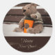 Sticker Rond Bonne année. Ours en peluche.