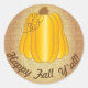 Happy Fall Y'All sticker est parfait pour une fête d'automne! Créé par Talking Dog avec un citrouille original et un arrière - plan de burlap.
