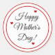 Joyeuse fête des mères entourée de contours circulaires rouges avec trois minuscules coeurs rouges en guise d'embellissement.