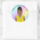 Sticker Rond Bonne journée ! Fille d'art populaire