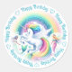Sticker Rond Bonne licorne d'anniversaire et sirènes