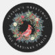 Sticker Rond Bonnes Fêtes de couronne rouge cardinale de pin