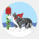 Prenant ses voeux de vacances à la boîte aux lettres, cette Bordure Collie se promène à travers la neige arborant son foulard rouge tricoté. Une adorable scène de Fêtes qui sera votre préféré ce Noël.