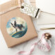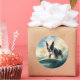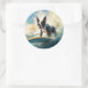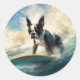 Sticker Rond Boston Terrier Beach Surfing Peinture
