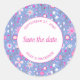 Motif de fleur sauvage botanique moderne peint à la main rose et blanc sur un arrière - plan bleu perwinkle pour un look d'été frais et heureux. Superbe coordination Save the Date stickers comme un rappel pratique pour vos invités. Modifiez le texte de votre célébration.