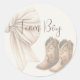 Vous voulez rendre votre Révélation de genre vraiment inoubliable? Notre collection exclusive et personnalisable est là pour vous aider à célébrer la grande surprise dans le style! Bottes Ou Vaches Beiges Sexe Révéler Équipe Garçon Classic Sticker Rond.