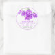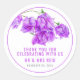 Bougainvillea aquarelle florale art sur blanc avec bractées mauve violet et fleurs mariage merci étiquette rond. Parfait pour un climat chaud bractées de vigne botanique tropicale et mariage à thème fleuri ou violet et blanc. Personnalisé avec vos propres mots de remerciement, nom de couple et date mariage. D'autres éléments correspondants et options de couleur sont disponibles. Image originale de Sarah Trett pour www.mylittleedenweddings.com