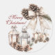 Sticker Rond Bougies Neige Cônes de Pin Noël