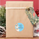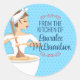 Jolie femme boulangère ou cuisinière "de ma cuisine", "de la cuisine de" étiquette-cadeau autocollants de boulangerie ou étiquettes de paquet pour la cuisson, boulangerie ou pâtisserie chef. Elle porte une chemise et un foulard bleutés, mélangeant un bol géant de pâte ou de pâte avec une cuillère géante en bois. Vous pouvez CHANGER LA COULEUR de l'arrière - plan via le bouton "customiser".