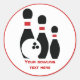 Boule de bowling et épingles autocollant avec une icône minimaliste de trois épingles de bowling noir avec des bandes rouges, une balle et votre texte sur un arrière - plan blanc avec une bordure rouge. Ce design cool est un modèle et il est entièrement personnalisable.