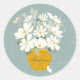 Sticker Rond Bouquet de fleurs blanches bleues vase d'or Merci