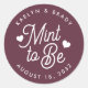 Les stickers "menthe to be" en écriture blanche avec des lettres accentuées de coeur, sur un arrière - plan de vin bordeaux. Personnalisez avec vos noms et votre date de mariage.
