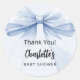 Un arrière - plan de couleur bleu clair. Décoré d'un grand arc. Personnalisez et ajoutez la mère pour être le nom de la mère. Script de style manuscrit noir. Texte : Merci !