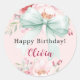 Sticker Rond Bow bleu rose sauge vert fleurons anniversaire