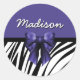 Motif imprimé zèbre tendance en noir et blanc avec ruban violet arc et arrière - plan. Ce design est facile à customiser avec votre nom ou monogramme. Un design moderne et mignon qui ferait un cadeau personnalisé chic pour une fille.