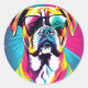 Sticker Rond Boxer Chien Énergétique Avec Lunettes De Soleil Po