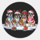 Sticker Rond Boxer chien Santa chapeau bois luge de Noël
