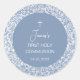 Sticker Rond Boy First Communion Blue and White Floral Pattern