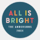 Bright coloré bleu marine amusant moderne 1 photo famille de Noël tout est brillant autocollant étiquette.