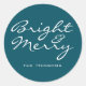 Sticker Rond Bright and Joyeux Script Bleu Nom vert Noël