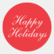 Sticker Rond Bright Red Plain Elegant Happy Holidays Message