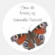 Un papillon paon européen, Inachis io, autocollant avec une couleur et un texte arrière - plans personnalisables. Le texte dit "De la bibliothèque de" et un nom fictif à changer à votre propre nom.