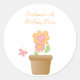 Cet autocollant de fête d'anniversaire a un mignon papillon volant à côté d'une fleur dans un pot. Vous pouvez facilement customiser vos informations de fête en haut. ©2010 JD Digi Designs