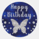 Sticker Rond Brosse à peintures bleu foncé et Papillon argenté