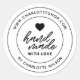 Brosse ronde moderne fait à la main Avec l'amour Coeur autocollant avec le mot "fait à la main" dans la police de script de brosse amusante, "avec amour" dans moderne sans serif, un coeur mignon et une double bordure pour votre adresse Web et le nom entre elle qui est facile à personnaliser. Il est parfait pour les amateurs, les artisans et les fabricants de produits artisanaux comme les artistes, les tricots, etc. Personnalisez-le en remplaçant le texte de l'espace réservé par votre nom et votre adresse Web. Pour plus d'options comme changer la police de texte de l'espace réservé, il est taille, espacement entre les lettres et pour développer ou contracter du texte courbe cliquez sur le bouton "Personnaliser". *Veuillez noter que le filigrane Zazzle qui apparaît dans l'aperçu du zoom n'apparaîtra PAS sur le produit imprimé final. © Bois de rose et agrumes