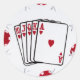 Un costume Royal Flush in Hearts avec des cartes éparpillées centrées et des puces de poker rouge autour de l'extérieur par l'artiste Jason Girard.