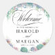 Elégant étiquette de vin de mariage a cactus succulent et design calligraphie sophistiqué.