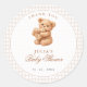 Sticker Rond Brown Gingham Teddy Bear Neutral Baby Shower Paper